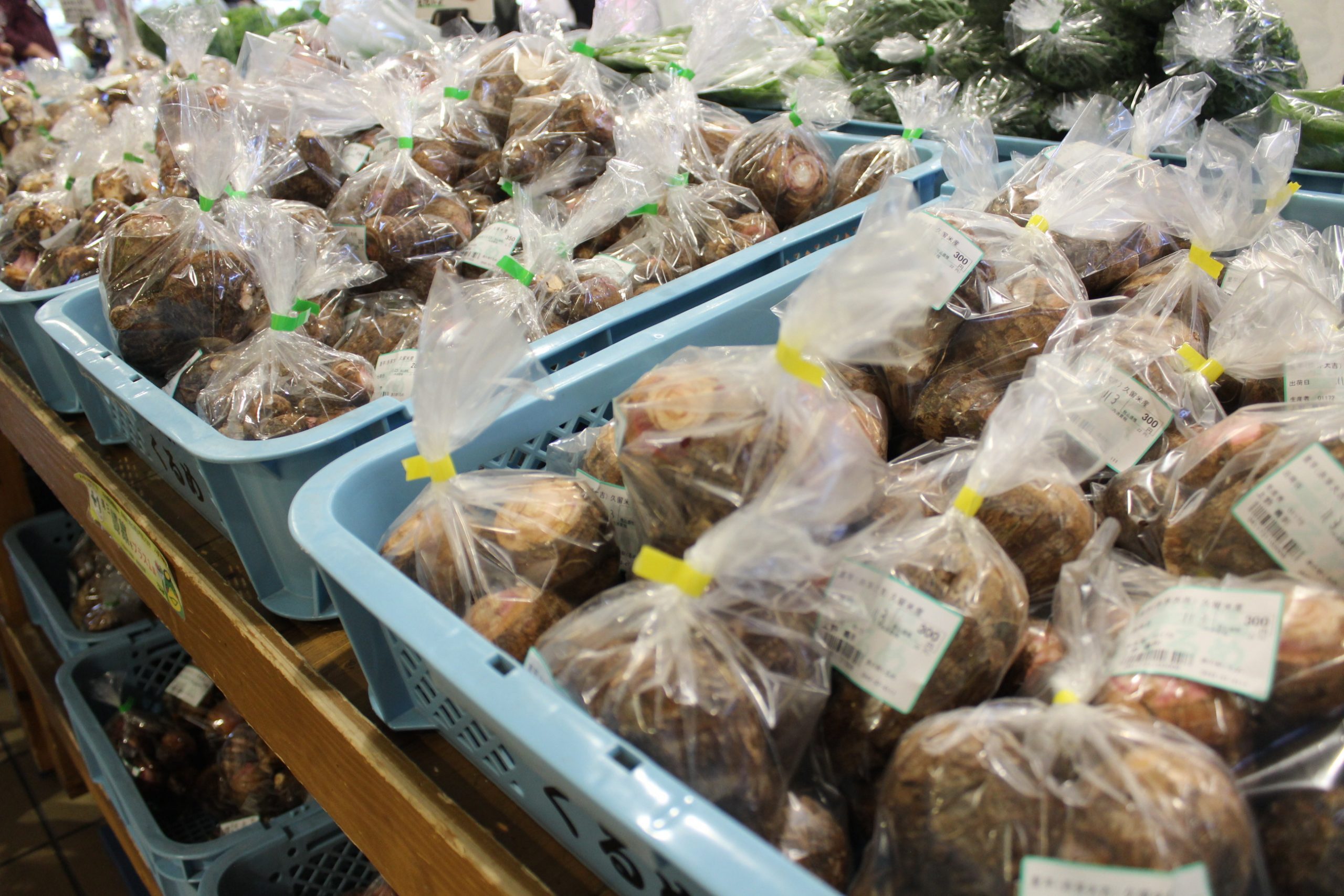 根ものは里芋を中心に、さつまいも、大根、かぶ、人参、カットかぼちゃなどが出荷中です。