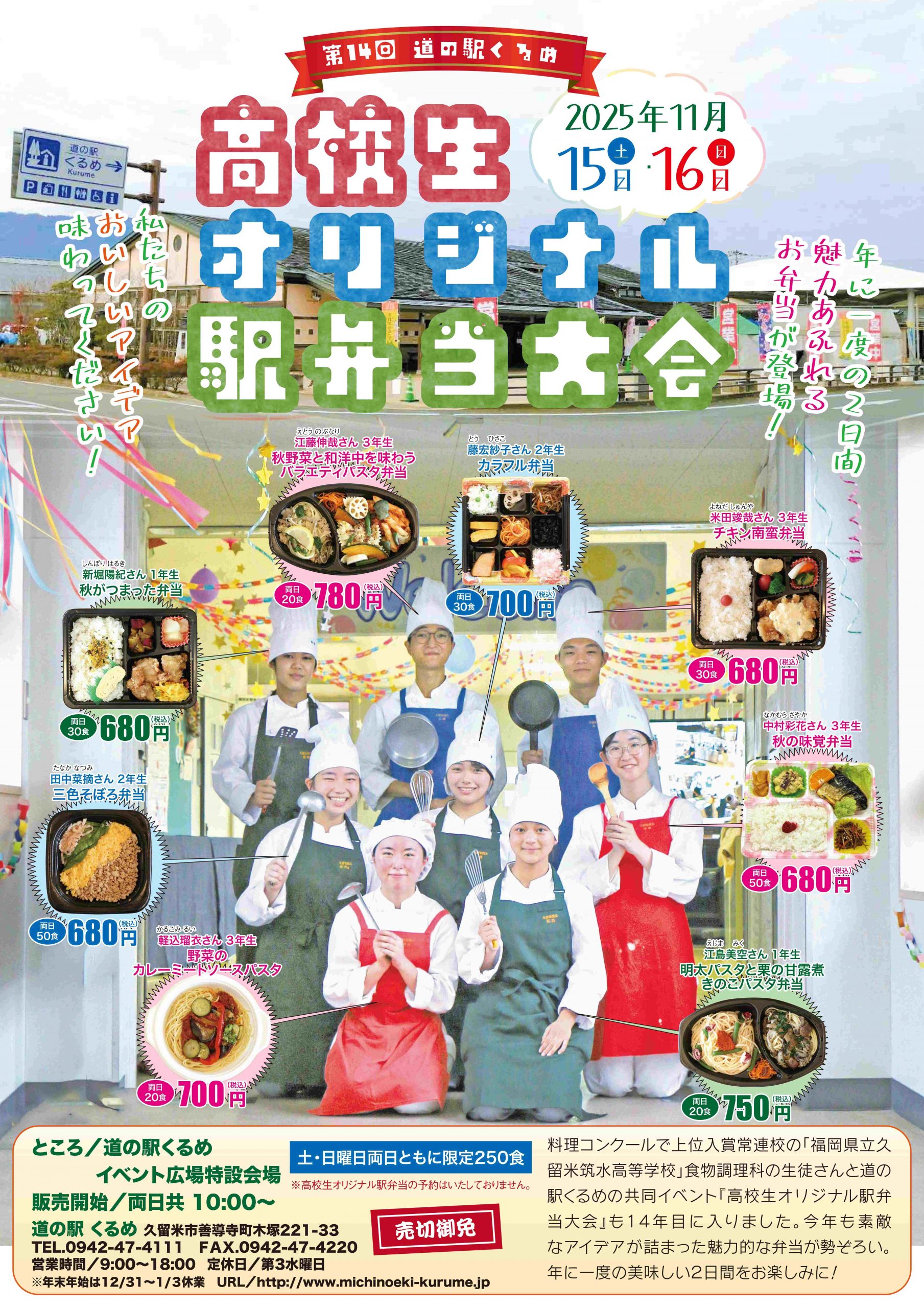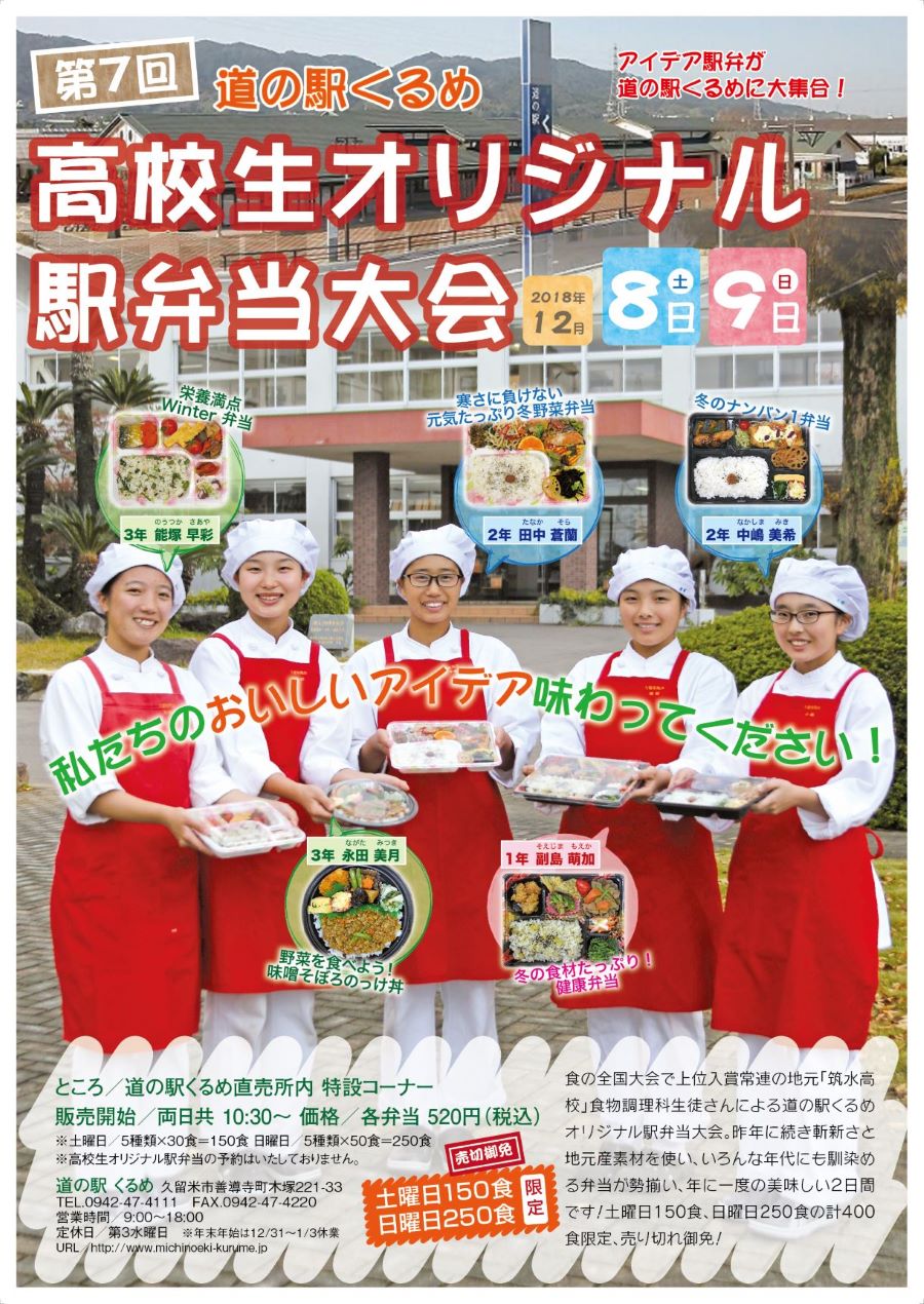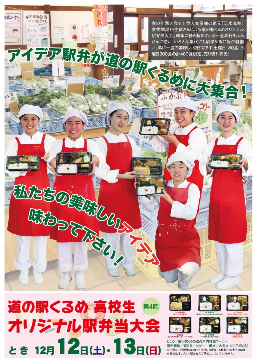 「道の駅くるめ」と「福岡県立久留米筑水高等学校」の共同企画で実施してきた『道の駅くるめ高校生オリジナル駅弁当大会』も今年で14年目を迎えます。