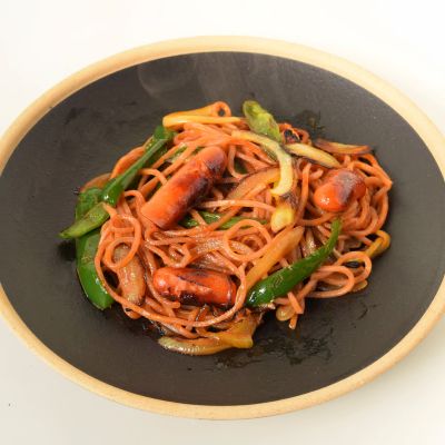 | 原材料名 | めん:小麦粉(国内製造)、デュラム小麦粉、ピオーネピューレ、食塩/酒精、ソルビトール、加工澱粉、酸味料、トレハロース、くちなし色素、(一部に小麦を含む) ソース:トマトケチャップ、菜種油、ピオーネピューレ、トマトピューレ、砂糖、カレー粉、ソテーオニオンペースト、食塩、にんにくペースト、香辛料、たまねぎエキス/調味料(アミノ酸等)、加工澱粉 |