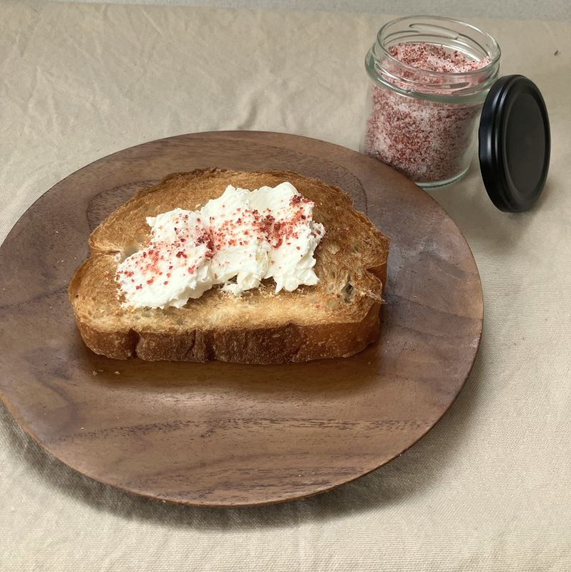 福岡、耳納連山の山麓の肥沃な大地で育てたあまおういちごを乾燥させて細かく砕き、グラニュー糖と合わせたシーズニングです。